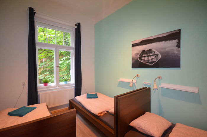 Private rooms are bright, comfortable, private with door lock, and our quietest rooms with a view to the yard (not to the street). Shared bathroom is only with one other room in the same apartment. The apartment has two separated toilets and a separated bathroom and fully equipped kitchen.